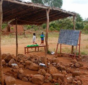 Múrsteinavertíðin stendur nú sem hæst í Malaví. Leirinn er unnin úr jörðu, hann mótaður í heppilega byggingarsteina og svo hertur í eldi. Sem sjá má er hlaðin vegleg stæða og opin neðst á henni eru eldhólf. Væn eldiviðarstæða er komin við hlið múrsteinanna og nú er hægt að hefjast handa: fíra upp og innan tíðar verður hægt að byggja einbýlishús.